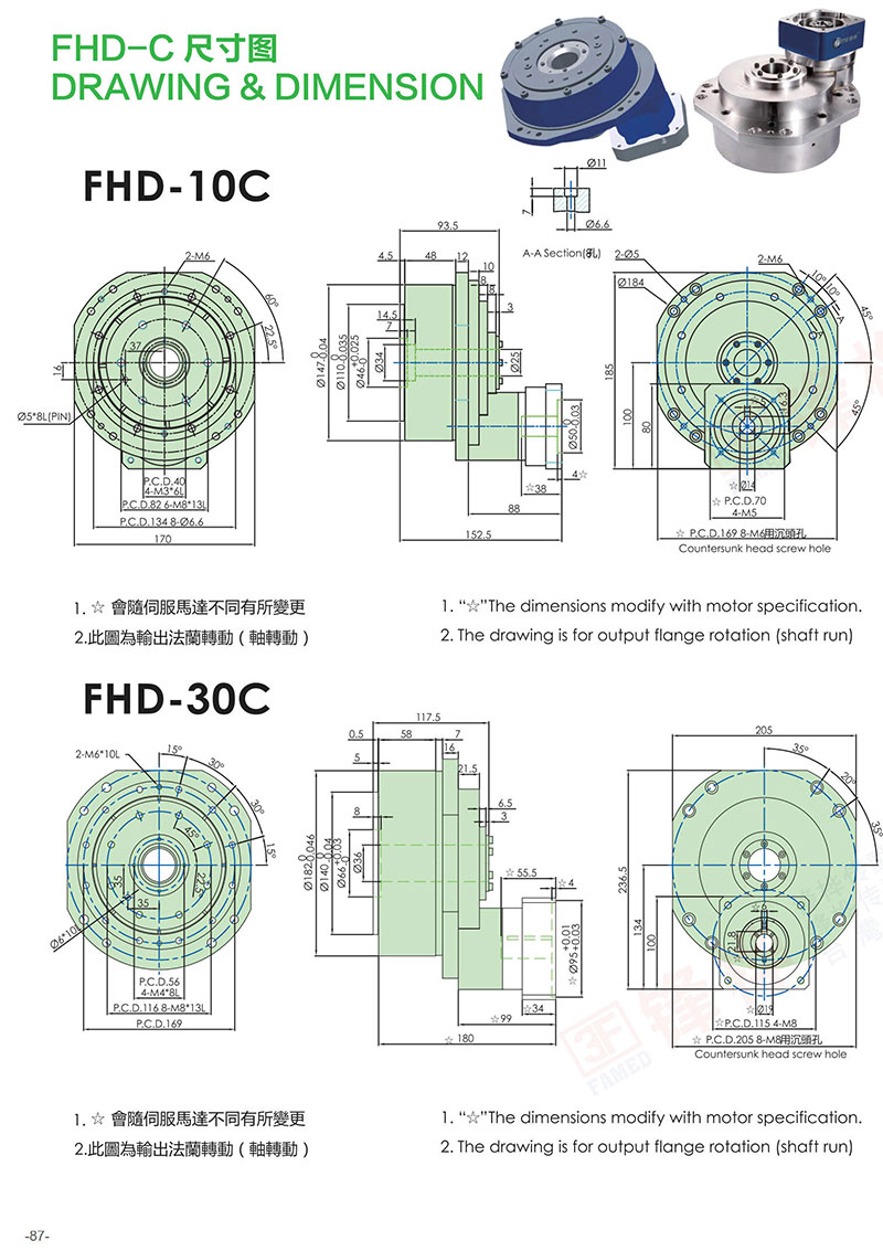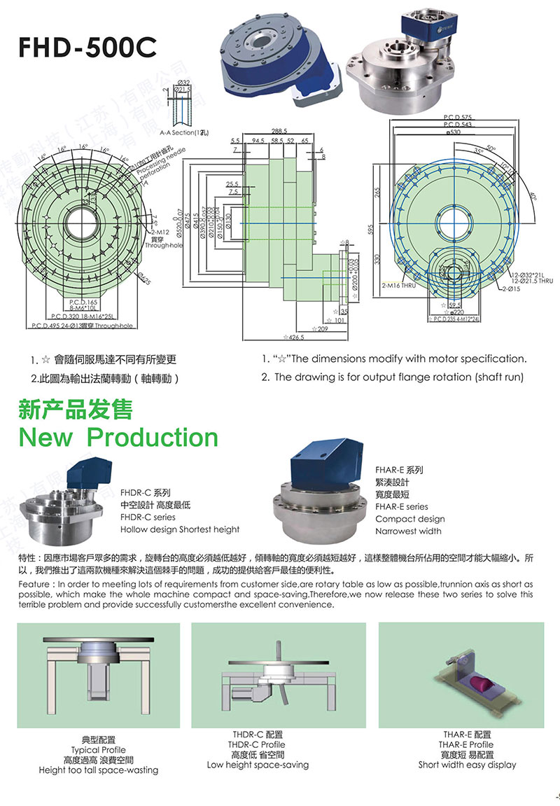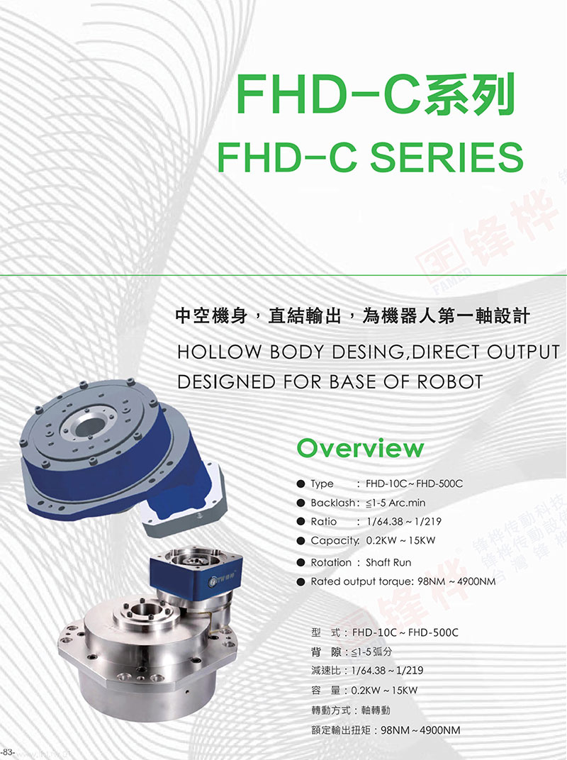 因應(yīng)市場(chǎng)機(jī)械的需要,許多機(jī)臺(tái)以及機(jī)械手臂的第一軸必須中空也希望伺服馬達(dá)能直結(jié),我們特別開發(fā)出FHD-C來解決這個(gè)問題,成功的做到減速機(jī)中空并且伺服能直結(jié),更能顯現(xiàn)應(yīng)用的便利性。