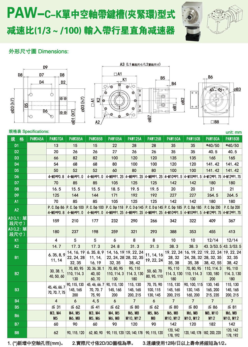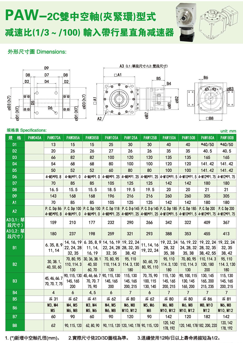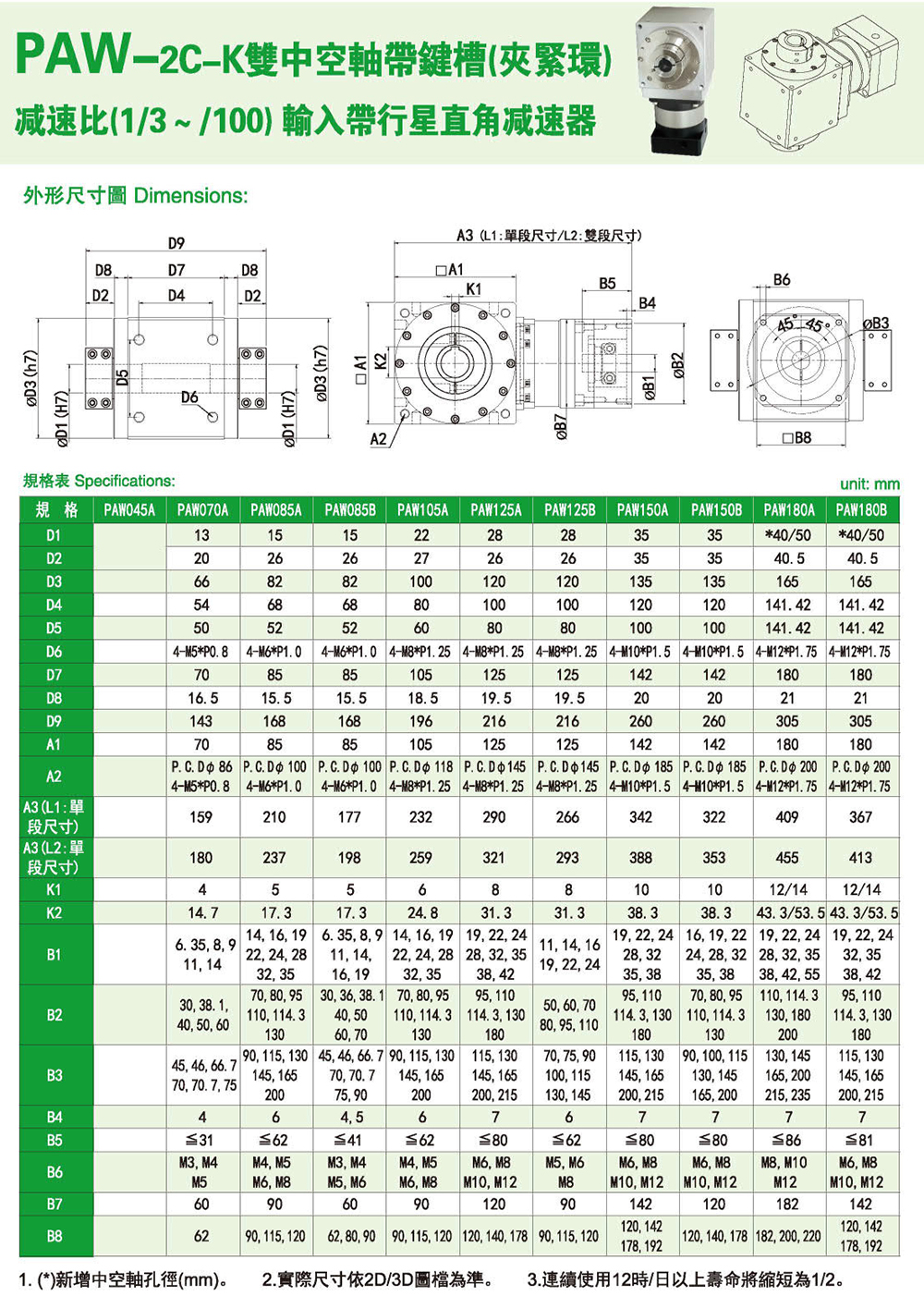 PAW-A標(biāo)準(zhǔn)型90度行星直角減速器