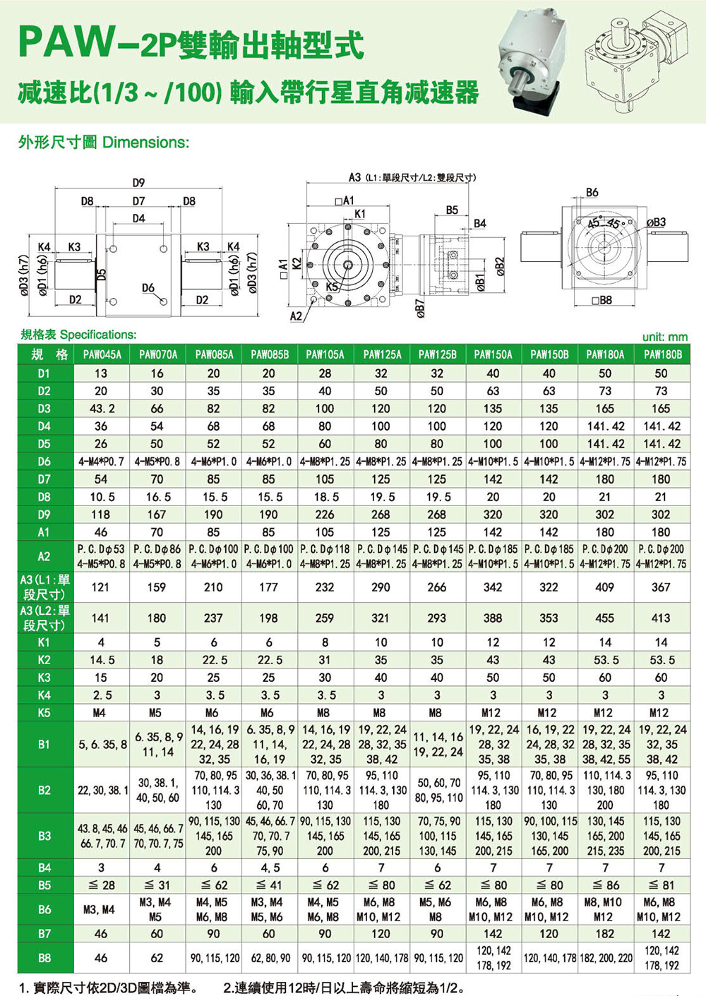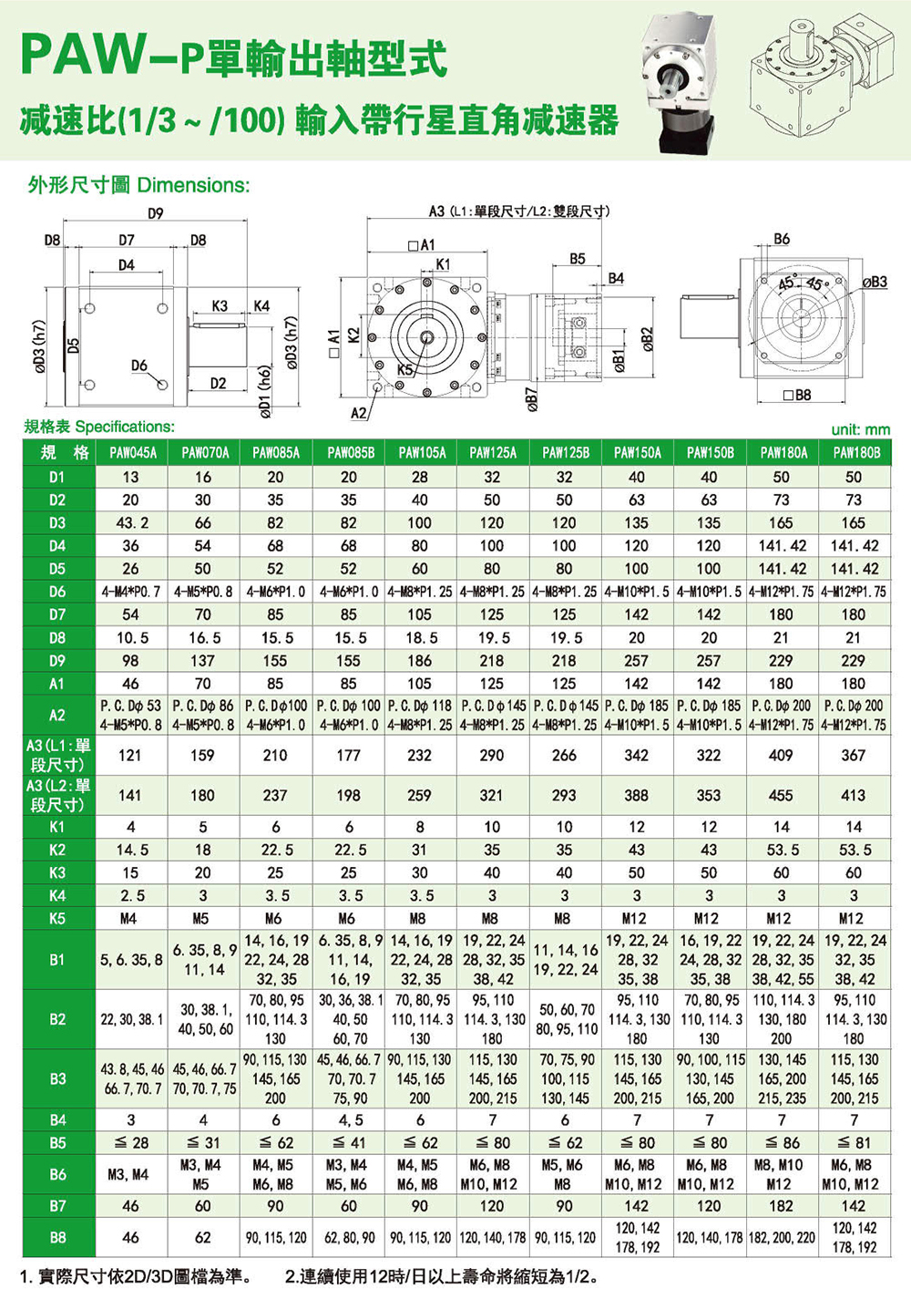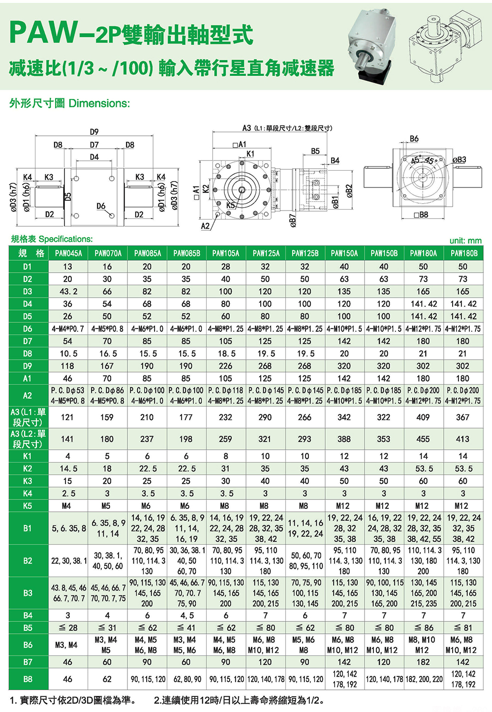 PAW-A標(biāo)準(zhǔn)型90度行星直角減速器