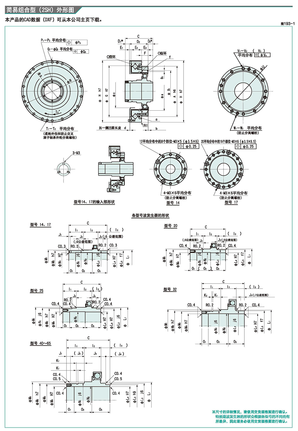 諧波減速機主要由波發(fā)生器、柔性齒輪、柔性軸承、剛性齒輪四個基本構件組成,諧波傳動減速器,是一種靠波發(fā)生器裝配上柔性軸承使柔性齒輪產生可控彈性變形,并與剛性齒輪相嚙合來傳遞運動和動力的齒輪傳動。 應用學科:機械工程(一級學科);傳動(二級學科);齒輪傳動(三級學科)諧波齒輪傳動減速器是利用行星齒輪傳動原理發(fā)展起來的一種新型減速器。