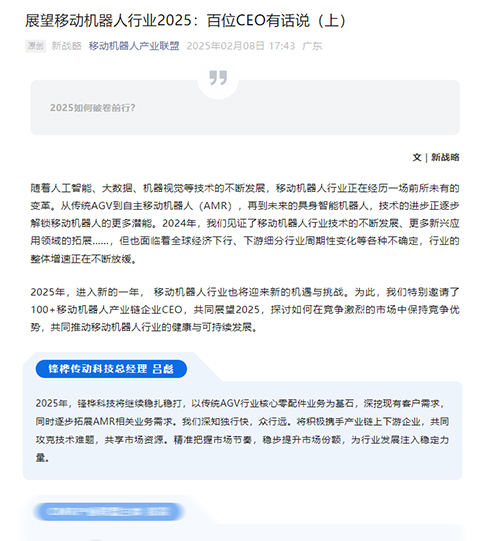 隨著 2025 年的到來,移動機器人行業(yè)迎來了新的發(fā)展篇章。在科技飛速進步和市場需求持續(xù)增長的雙重驅(qū)動下,這個行業(yè)正站在新的機遇與挑戰(zhàn)的十字路口。 鋒樺傳動科技作為其中一員,將與行業(yè)同仁共同探討競爭優(yōu)…